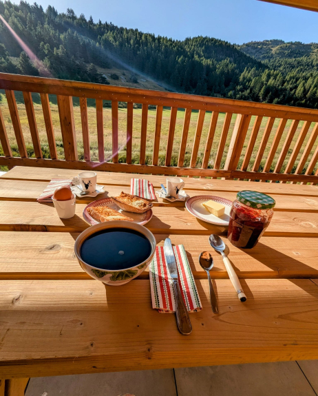 Entdecken Sie ein geräumiges, lichtdurchflutetes und liebevoll eingerichtetes Chalet für unvergleichliche Momente der Entspannung. Genießen Sie die herrliche Südterrasse, die einen Panoramablick auf die Berge des **Dévoluy** bietet. Ein perfekter Ort, um eine gute Mahlzeit im Freien zu genießen oder sich in aller Ruhe zu entspannen.