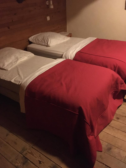 1 Zimmer mit 3 Einzelbetten und 1 Zimmer mit 2 Einzelbetten.