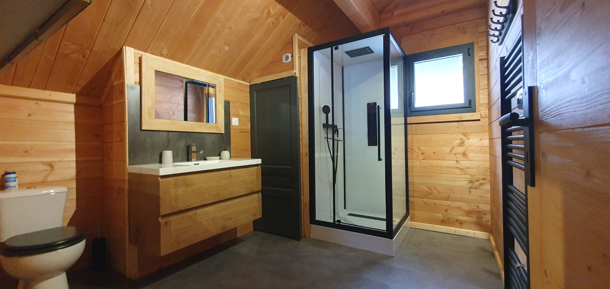 Das Chalet ist mit zwei Duschräumen ausgestattet, 1 im Erdgeschoss und 1 im Obergeschoss.