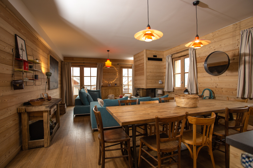 Vermietung Ferienwohnung in einem Chalet La petite bulette 5* /140m2 / 11 pers / 4 chambres et 4 sdb/ au pied des pistes
