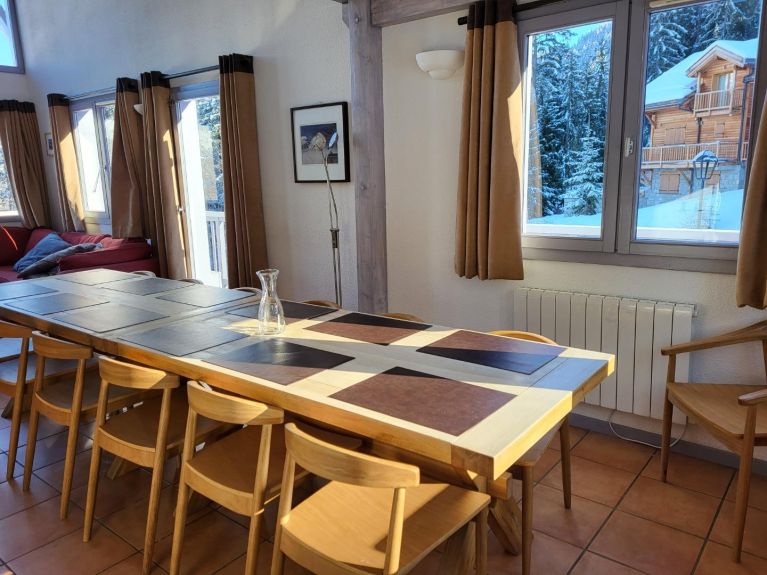 Das Haus liegt im Herzen des Skigebiets 3 Vallées mit einer schönen Aussicht und ist ideal, um die Freuden des Wintersports und die Abende am Kamin zu genießen.