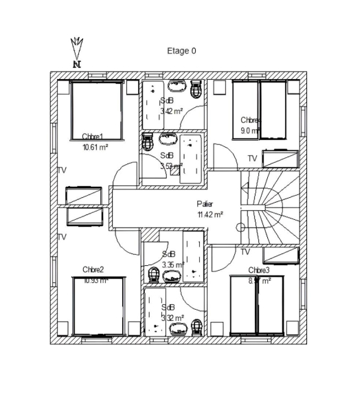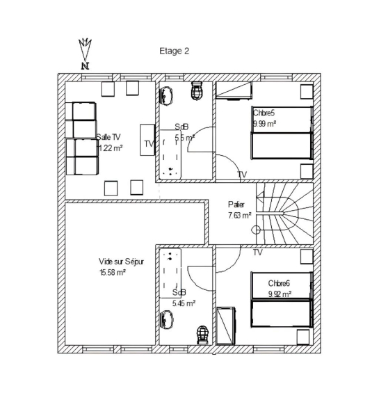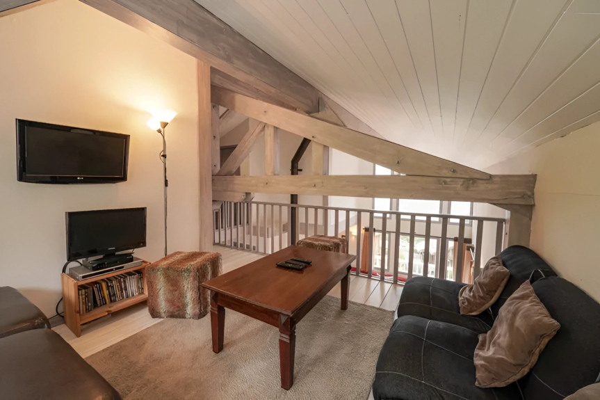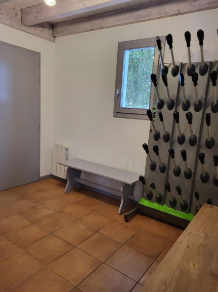 Es erstreckt sich über 3 Etagen und besteht aus 7 Schlafzimmern (3 Doppelzimmer und 4 Zimmer mit zwei Einzelbetten, jedes mit eigenem Bad und TV), 1 Wohnzimmer mit Kathedrale und Kaminofen, einem großen Esstisch für bis zu 14 Personen, einer voll ausgestatteten Küche und einem TV-Raum im Zwischengeschoss.