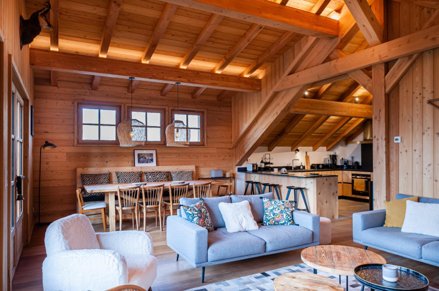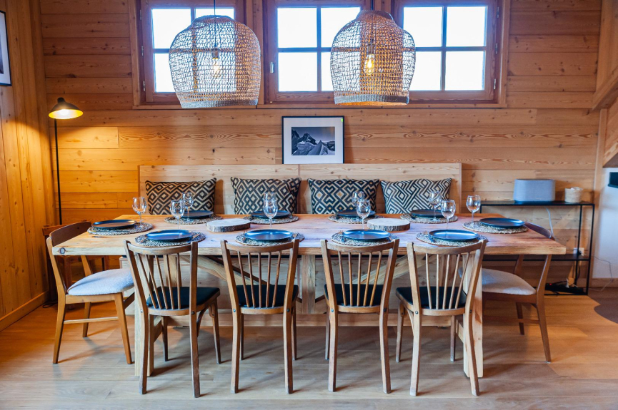 - einem schönen Wohnraum mit einem Wohnzimmer und einem Kamineinsatz; einem Essbereich mit einem großen Tisch; der offenen Küche mit einer Bar und perfekt ausgestattet (Geschirrspüler, Kühlschrank, Gefrierschrank, Umluftofen, Mikrowelle, Nespresso-Kaffeemaschine, Multifunktionsgerät, Pierrade, Raclette, Waffeleisen...).