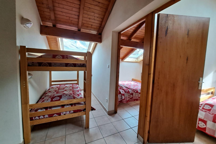 Stock besteht aus 2 Schlafzimmern mit Doppelbett in jedem Zimmer, einer Bergecke mit einem Etagenbett und einem Wohnzimmer mit einem Clic Clac.