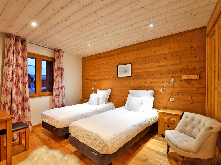 Das Chalet verfügt über 4 Schlafzimmer, jedes mit einem eigenen Badezimmer en-suite. Es kann sehr komfortabel 8 Personen beherbergen.