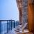 Der Balkon des Wohnzimmers ist mit Tisch, Stühlen und Sesseln ausgestattet.
