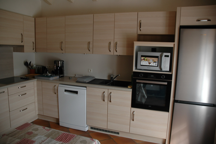 Im Erdgeschoss befindet sich eine Empfangsschleuse mit Garderobe, die zum Eingang führt, dann ein großes Schlafzimmer mit zwei Etagenbetten, eine Spielecke, ein zweites Schlafzimmer mit einem Doppelbett, ein Badezimmer und ein WC.