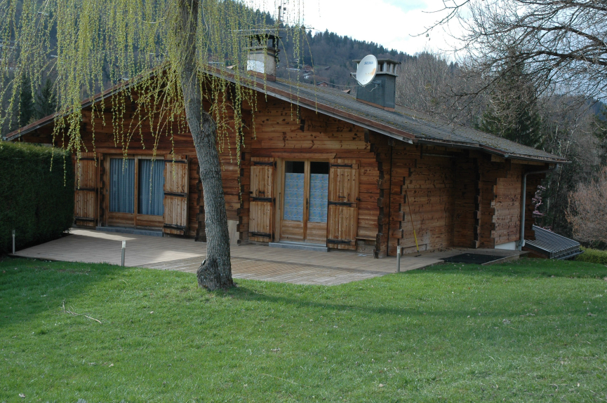 Typisch savoyisches Familienchalet von ca. 140m², hoher Komfort, für 10 Personen, auf 1000m Höhe auf 2 Ebenen, in einer außergewöhnlichen und ruhigen Umgebung mit Blick auf den Mont Blanc.