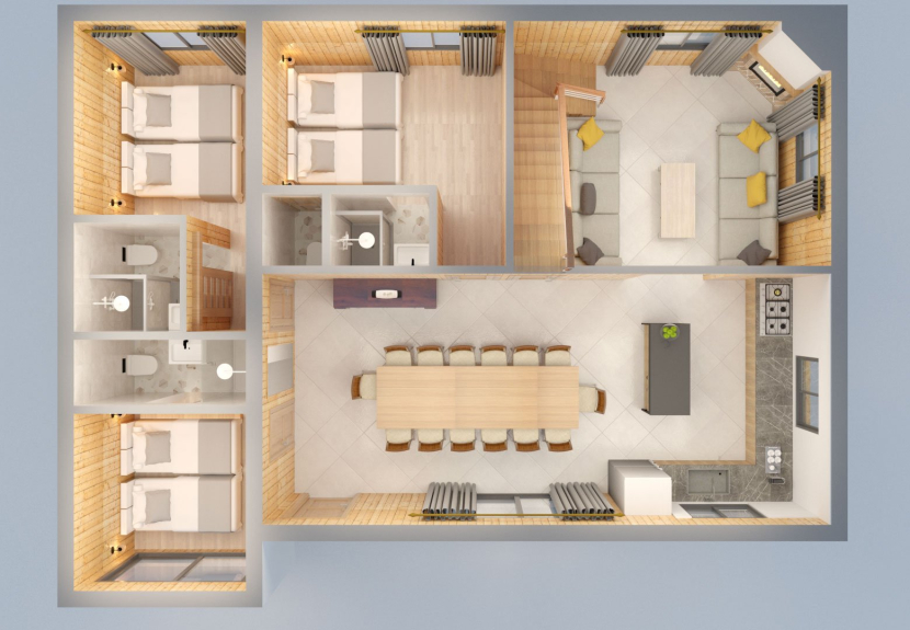 Mit seinen 7 Doppelzimmern, die jeweils mit einem eigenen Badezimmer ausgestattet sind, können Sie die Privatsphäre und den Platz genießen, den Sie brauchen, um sich nach einem aktiven Tag auf der Piste zu entspannen.