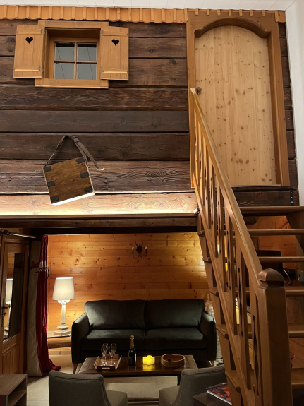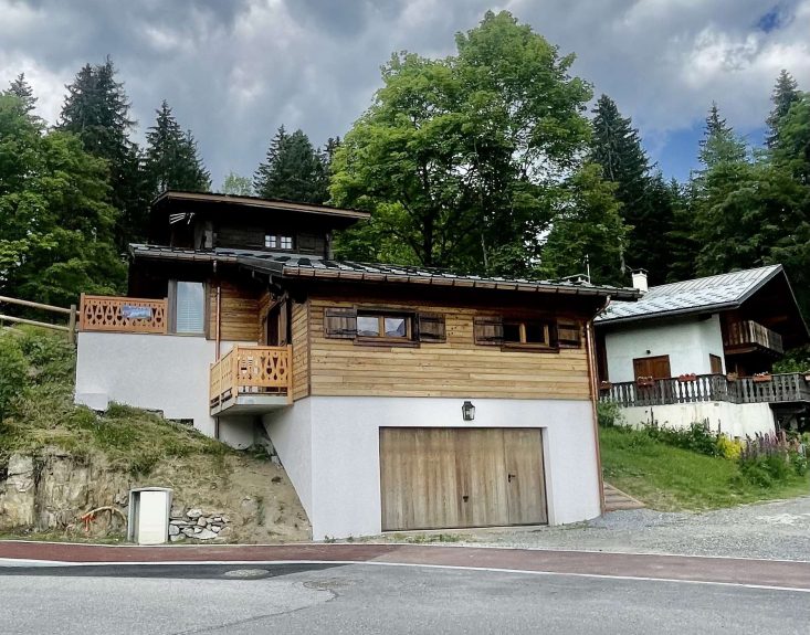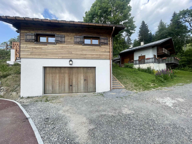 Diese Doppelhaushälfte besteht aus einem Chalet, das 2022 komplett renoviert wurde, und einem neuen Chalet. Sie liegt an der Straße zwischen dem Dorf Crest-Voland und Le Cernix, 600m vom Fuß der Pisten des Espace Diamant und der Skischule entfernt.