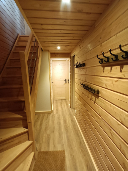 Das Châlet ist 60 m2 groß und erstreckt sich über zwei Etagen. Im Erdgeschoss finden Sie einen Eingang, 2 Schlafzimmer mit jeweils 4 Schlafplätzen (2 große Etagenbetten pro Zimmer), eines der beiden Zimmer öffnet sich auf einen Balkon. Ein Duschraum und eine Toilette.