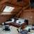Im Obergeschoss befindet sich ein Wohnraum mit einer Küchenzeile, einer Essecke, einer Sitzecke mit Schlafsofa und einem Balkon.
