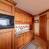 Einbauküche mit 4 Ceranfeldern, Dunstabzugshaube, kombinierter Mikrowelle, Kühlschrank und Geschirrspüler, Wasserkocher, Toaster und Kaffeemaschine.