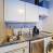 Küche mit 2 Kochplatten, Kühlschrank, Mikrowelle, Backofen, Kaffeemaschine, Wasserkocher und Waschmaschine.