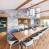 Im Gartengeschoss befindet sich das große, einladende Wohnzimmer mit Sofas und Kamin; Essbereich mit großem Tisch, der sehr komfortabel 15 Personen Platz bietet. Die moderne amerikanische Küche ist sehr gut ausgestattet; unter anderem mit zwei Kühlschränken und einem großen Induktionsherd. Es gibt eine separate Toilette, die man über den Flur erreicht.