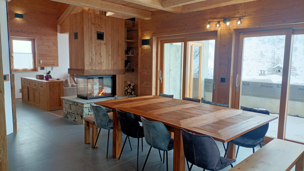 Im Herzen des schönen Dorfes Bonneval sur Arc bieten wir Ihnen die Möglichkeit, in unserem frisch gebauten Chalet Mont Seti zu wohnen. Auf drei Ebenen, geräumig, gemütlich und modern zugleich, bietet es allen Komfort, von dem man träumt, und bietet Ihnen gleichzeitig einen freien und wunderschönen Blick sowie zahlreiche Außenbereiche. In ruhiger Lage können Sie sich entspannen, die Landschaft, den Schnee und schöne Momente mit der Familie oder mit Freunden an einem schönen Tisch mit Kamin im Herzen des großen Wohnraums genießen. Die Höhe unter dem Dachstuhl und die großen Öffnungen verleihen dem Haus Helligkeit und ein Gefühl der Freiheit, sodass Sie die Schönheit unserer Landschaften in vollen Zügen genießen können. In den fünf großen und schönen Schlafzimmern, den Master-Suiten mit eigenem Badezimmer und dem großen Badezimmer mit Eckbadewanne findet jeder seinen Platz.