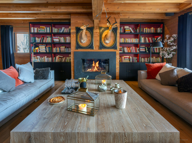 Der offene Wohnbereich verspricht gemütliche Winterabende vor dem Kamin. Bücher, Gesellschaftsspiele und ein Tischkicker sorgen für Unterhaltung. Bei schönem Wetter können Sie sich auf der Terrasse zum Grillen treffen.