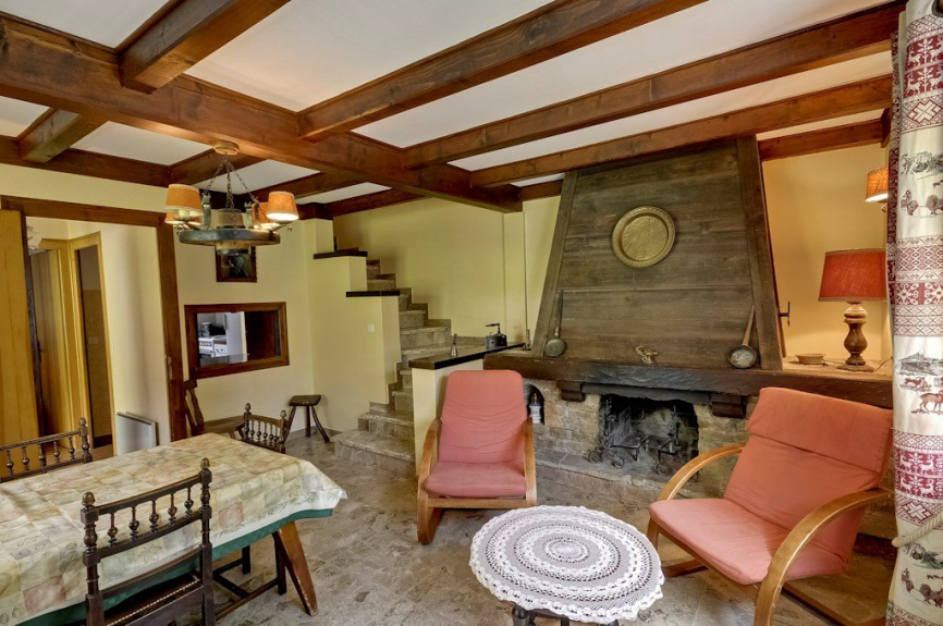 -einem Wohnzimmer mit rustikalem Kamin, TV, Telefon, kostenlosem Wifi.