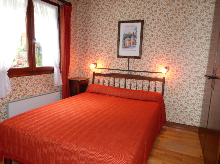 - 2 identische Schlafzimmer mit jeweils einem Bett (90x190), 2 Nachttischen, einem doppelten Kleiderschrank, einem kleinen Tisch und einem Stuhl.