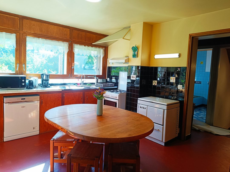 Der erste Stock ist das Herzstück dieses Hauses. Am Ende der Treppe haben Sie eine große, sehr gut ausgestattete Küche, in der Sie den Gaumen der ganzen Familie verwöhnen können. Kein großer Koch? Keine Sorge, das große Wohnzimmer ist für Sie da. Hier können Sie lesen, fernsehen oder sich beim Monopoly rächen. Ein Badezimmer und eine separate Toilette vervollständigen die Gemeinschaftsräume.