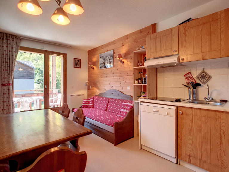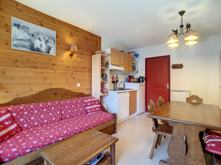 APPA PALATIN A08 - Hübsche Wohnung mit allem Komfort in einer Residenz am Rande der Piste des Skiortes Pelvoux. Südlage, 1 Schlafzimmer, 1 Bergecke mit Etagenbett, Duschraum, separates WC und Terrasse. KEIN WIFI.