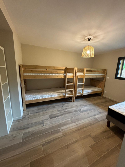 1 Schlafzimmer mit 1 Bett 140 und 4 Etagenbetten 90