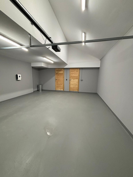 1 geschlossene Garage für 2 Autos, die mit einer elektrischen Aufladevorrichtung ausgestattet ist.