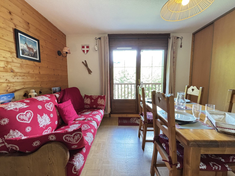 Im Sommer befinden Sie sich in der Nähe zahlreicher Wege für angenehme Spaziergänge oder Mountainbike-Touren. Der Sessellift von Les Evettes, der an zwei Tagen in der Woche geöffnet ist, ermöglicht Ihnen einen einfachen Zugang zu den schönsten Panoramen auf das Aravis-Gebirge. Der See von Flumet und sein Freizeitzentrum sind nur 3 km entfernt.