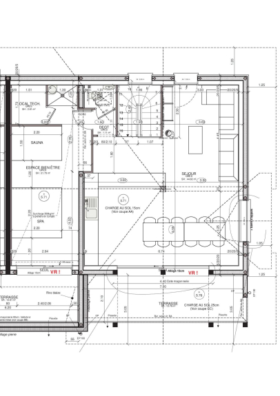 Ein großes Wohnzimmer mit Kamin, eine Terrasse von 20m2 und ein Wellnessbereich mit Jacuzzi und Sauna.