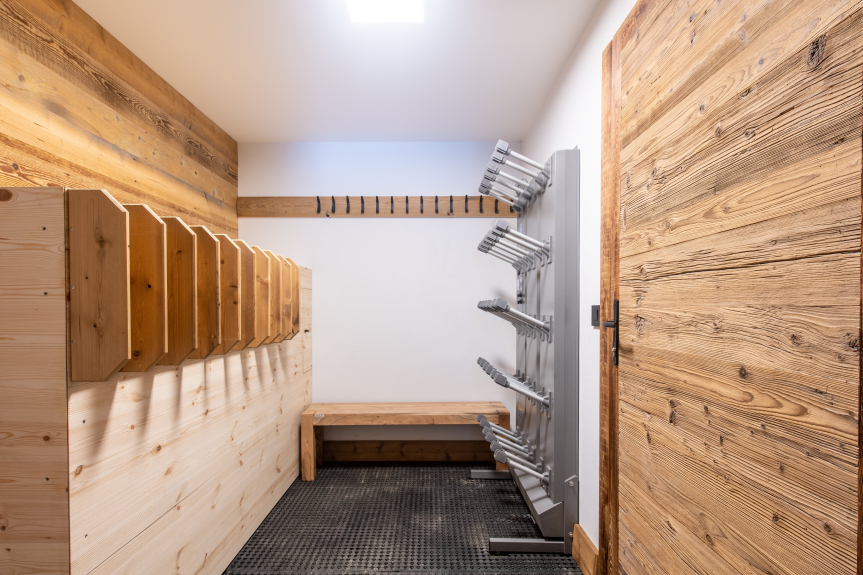 Im Erdgeschoss finden Sie eine Garage zum Abstellen eines Fahrzeugs (unter 4,50 m), eine separate Toilette und einen Skiraum mit Bänken und Skischuhtrockner, sehr praktisch, wenn Sie vom Skifahren kommen.