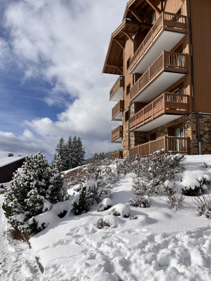 - Bushaltestelle am Fuße der Residenz, die zum Zentrum von Les Saisies führt (kostenloser Pendelbus).
