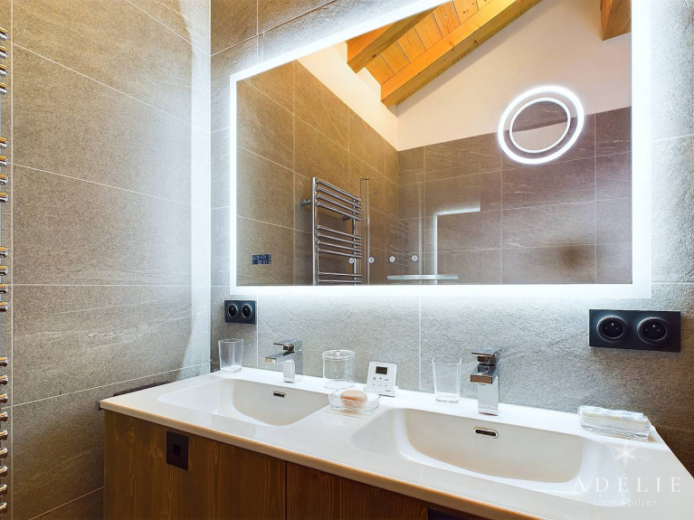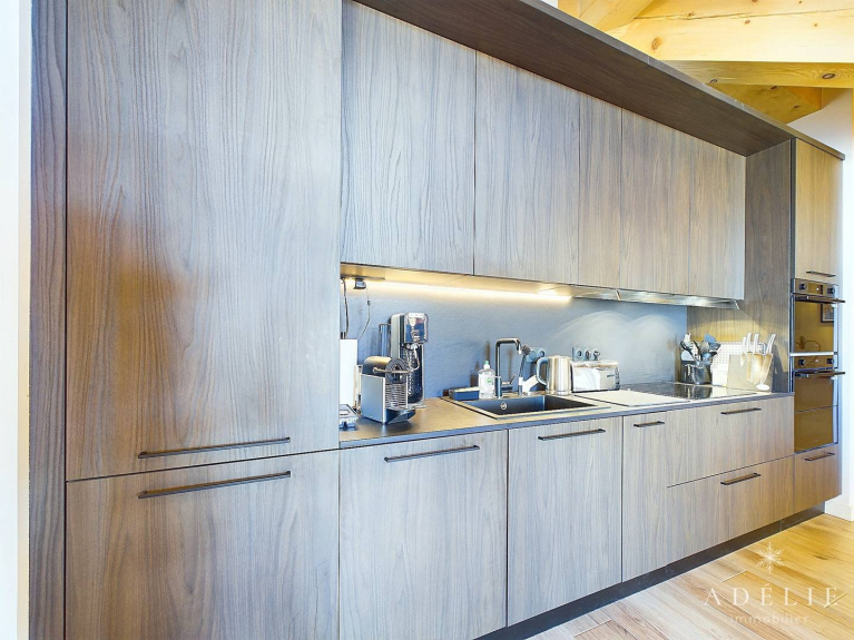 - Geräte: Backofen, Mikrowelle, Induktionskochfelder, großer Kühlschrank mit Gefrierfach, Nespresso-Kaffeemaschine, Wasserkocher, Toaster, Waschmaschine, Wäschetrockner, Raclette-, Fondue- und Pierrade-Gerät.