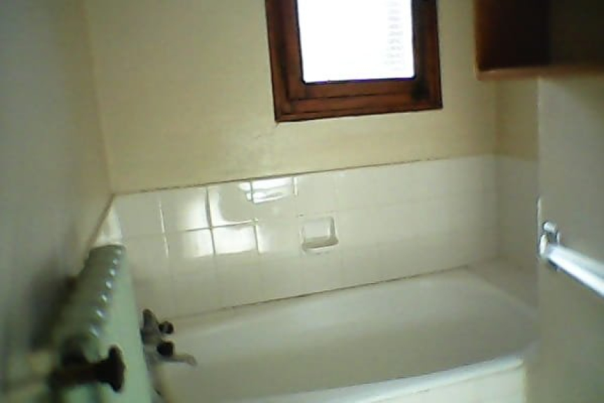 Ein Badezimmer mit einer Badewanne, das WC ist vom Badezimmer unabhängig.