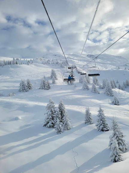 Genießen Sie bei Ihrer Ankunft vom Balkon aus einen herrlichen Blick auf die Berge und die verschneiten Pisten, ganz ohne Gegenüber.