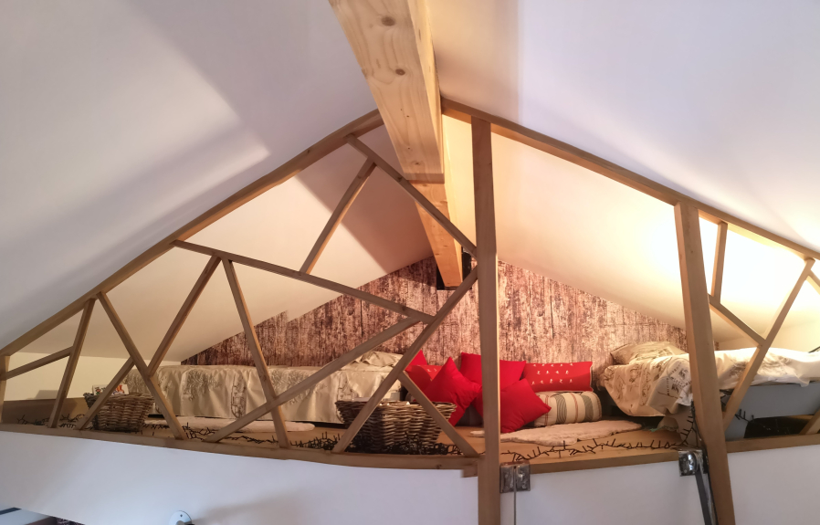 * Sie werden in einem der beiden Doppelzimmer, in der Bergecke oder im Schlafbereich auf dem Zwischengeschoss übernachten, um neue Energie zu tanken.