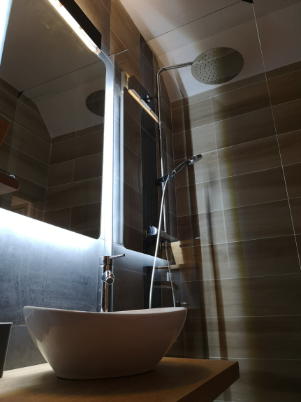 1 Duschraum mit Waschbecken und WC - Handtuchwärmer - Haartrockner