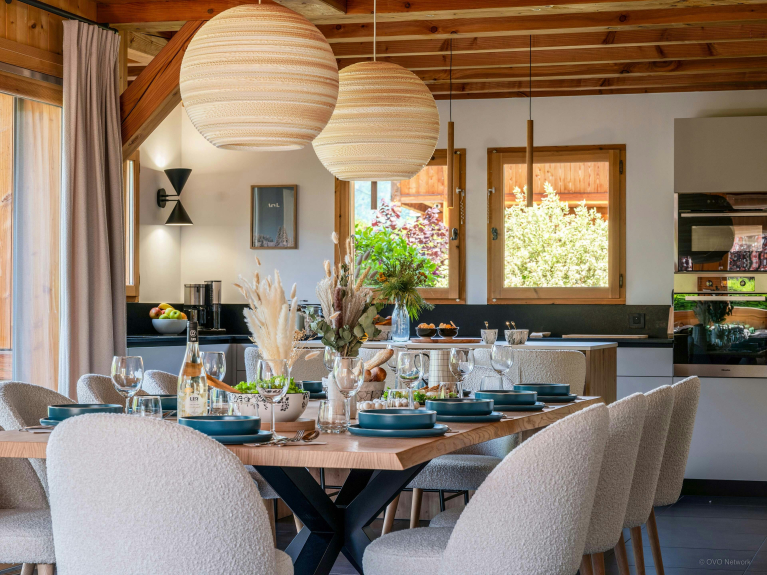 Bis zu 12 Urlauber (davon 10 Erwachsene) können im Chalet OCimes wohnen, das über fünf Schlafzimmer und sechs Badezimmer verfügt, die auf zwei Etagen untergebracht sind.