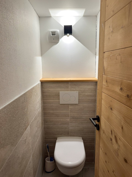 Die Lage ist ideal, in einer ruhigen Gegend mit sehr schnellem Zugang zur Gondelbahn zu Fuß, und das Dorfzentrum ist in wenigen Minuten mit dem Auto erreichbar.