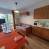 Zum Wohnzimmer offene Küche mit 2 Kochplatten, Mikrowelle, traditionellem Ofen, Kühlschrank, Wasserkocher, Kaffeemaschine, Toaster.