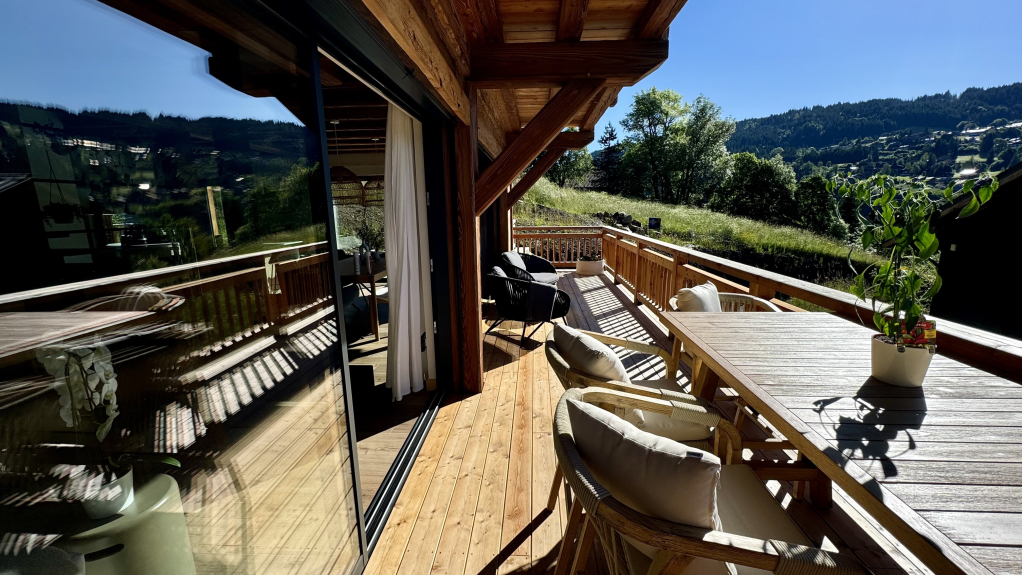 Das Chalet verfügt über eine große Terrasse und zwei Balkone mit Südausrichtung.