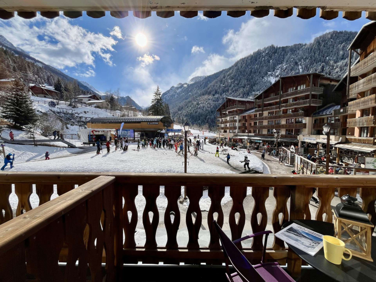 - Balkon mit Südlage mit Blick auf den Hauptplatz und die Skilifte.