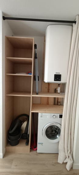 - Kochnische mit 2 Induktionskochplatten, Kühlschrank, Geschirrspüler, Kombi-Mikrowelle und Backofen.