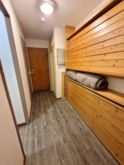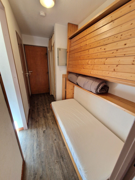 - 1 ausziehbares Einzelbett im Eingangsbereich, der durch eine Tür vom Wohnzimmer getrennt ist.