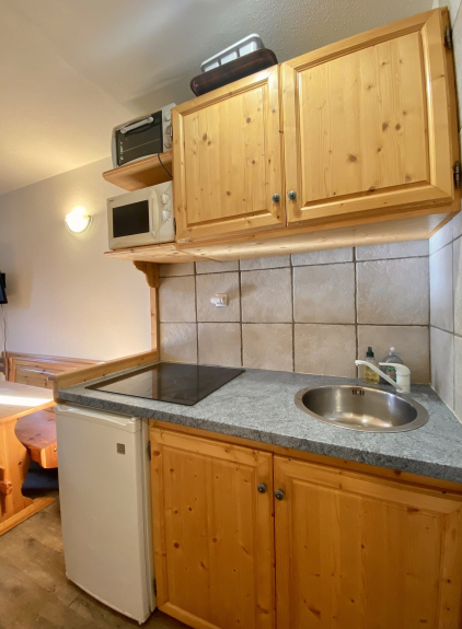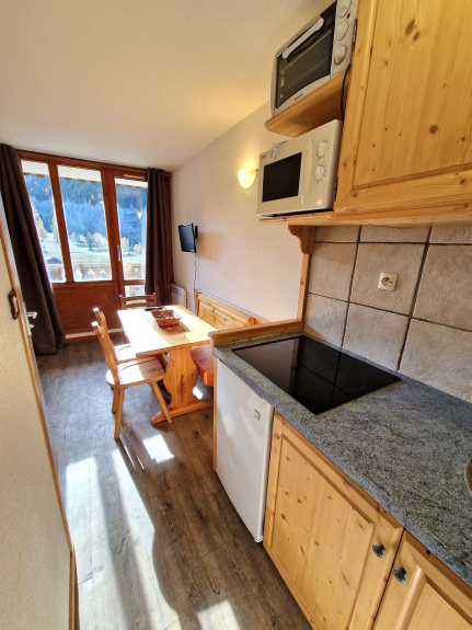- Kochnische mit 2 Kochplatten, Kühlschrank, Backofen.