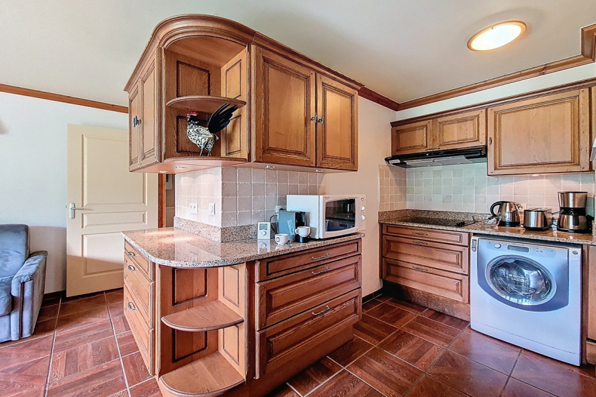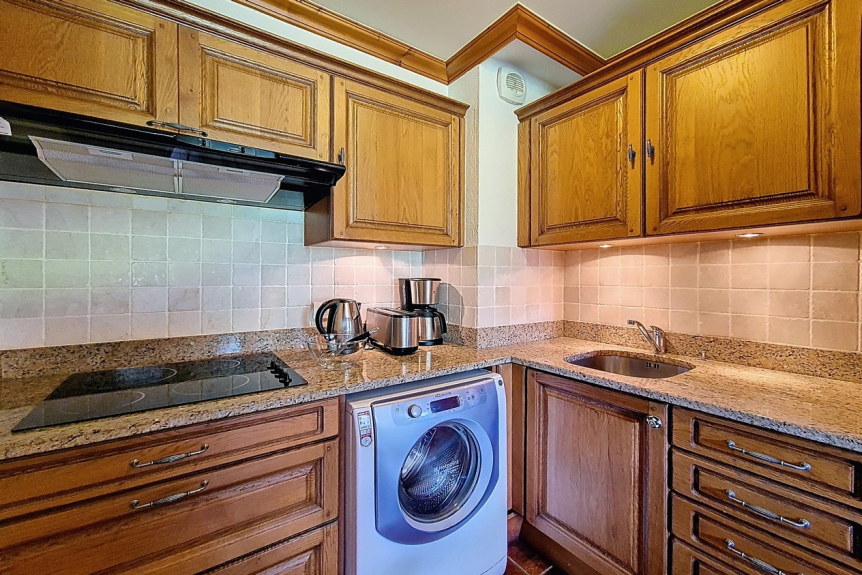 Küche: 4 elektrische Kochplatten, Mikrowelle mit Grill, traditioneller Ofen, Geschirrspüler, Waschmaschine, Wasserkocher, Toaster, Kaffeemaschine, Nespresso-Kaffeemaschine.