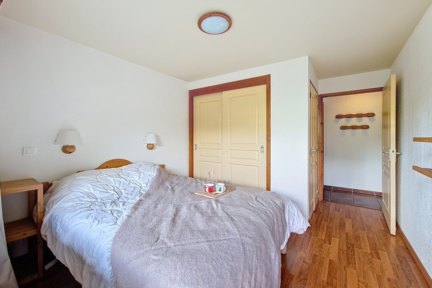 Die geräumige 70m² große Wohnung bietet einen Blick auf die Berge. Sie befindet sich in der 3. Etage der Residenz und verfügt über einen Balkon.