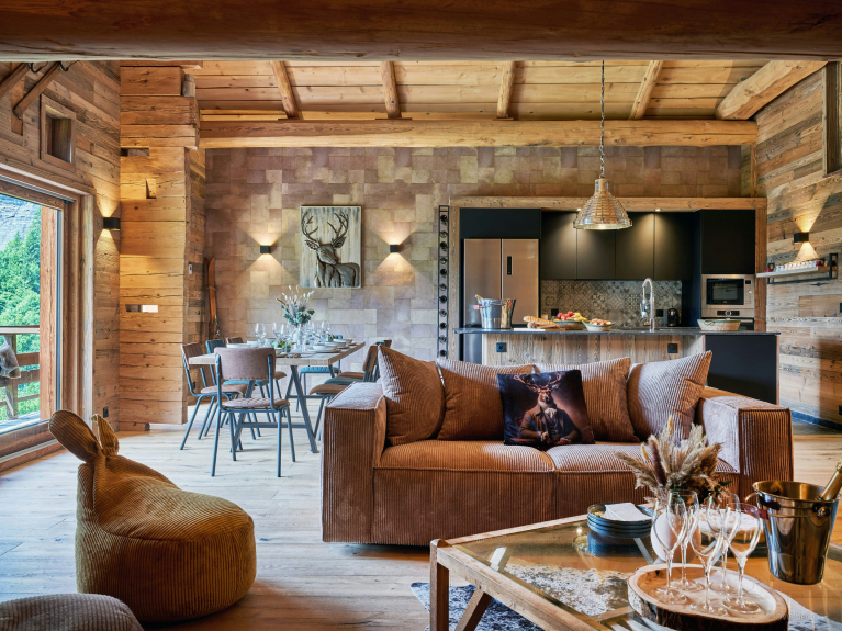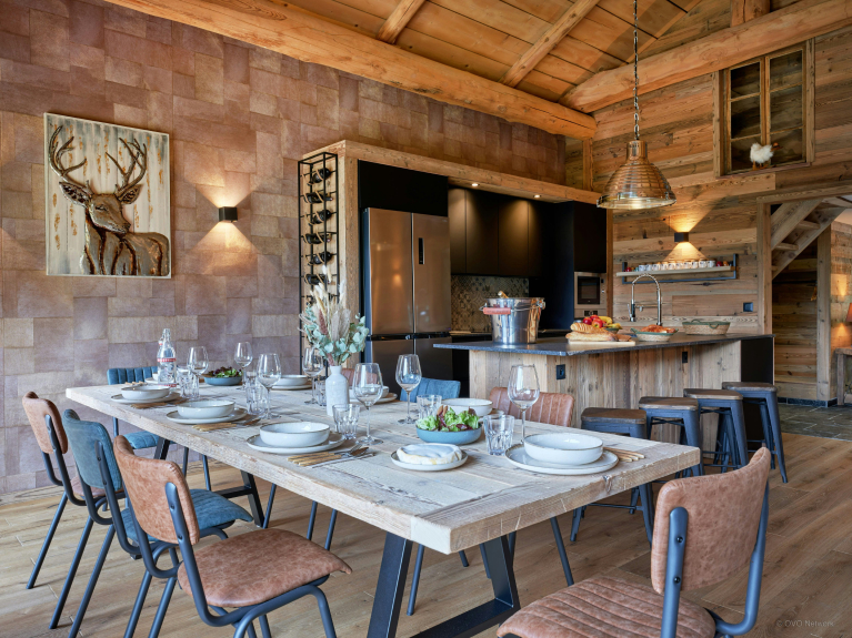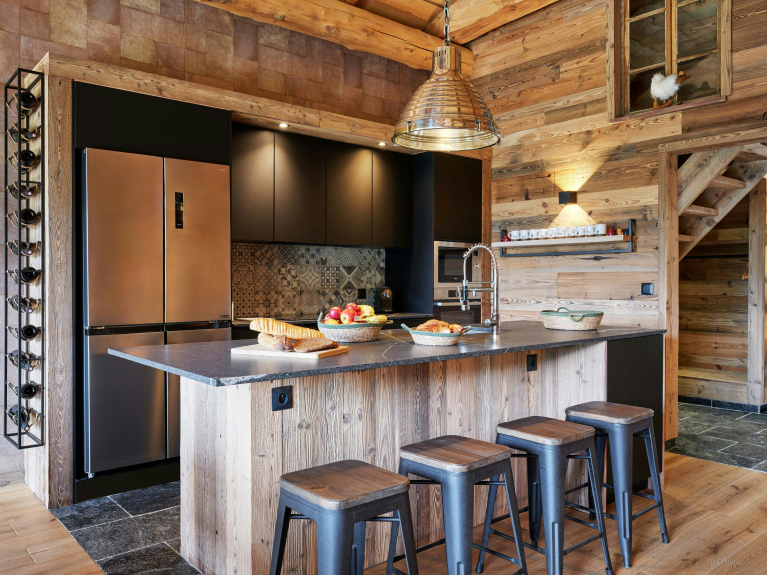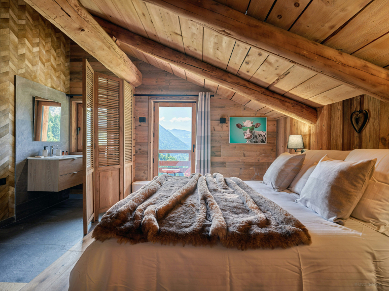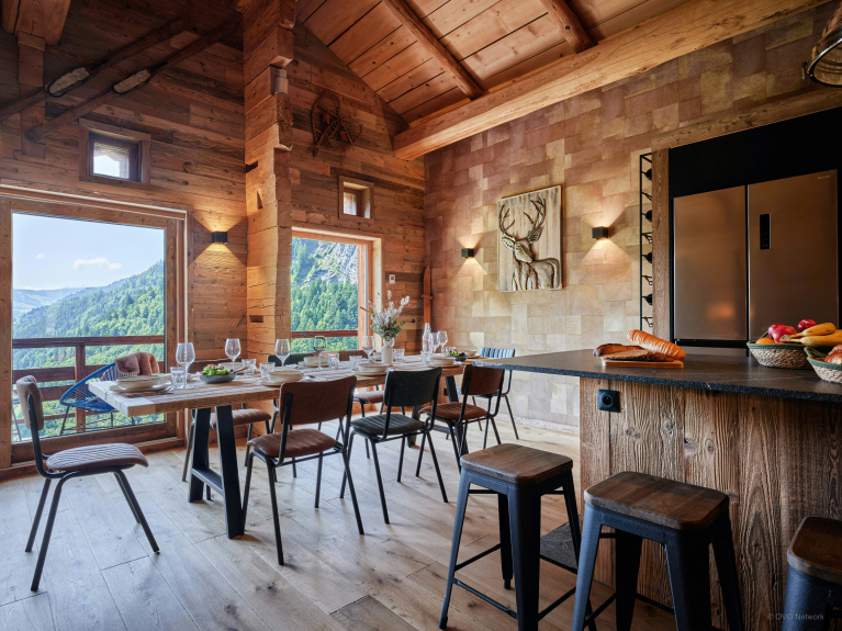 Schon bei den ersten Schritten werden Sie von dem gemütlichen Wohnraum und seiner savoyischen Dekoration begeistert sein. Er vereint ein sehr geselliges Wohnzimmer mit Fernseher, einen großen Esstisch und eine kompakte, sehr gut ausgestattete Küche. Eine große Fensterfront führt auf einen mit Sesseln ausgestatteten Balkon, von dem Sie einen atemberaubenden Blick auf das Tal genießen können.