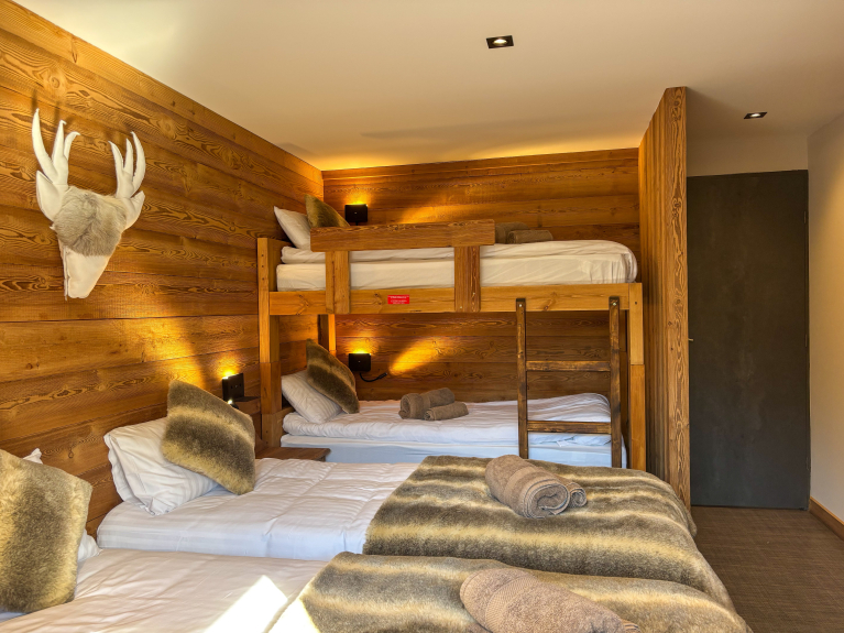 Das Appartement YÉTI (105 m²), das im Sommer 2025 renoviert wurde, verbindet alpinen Charme mit modernem Komfort. Es kann bis zu 8 Personen beherbergen und befindet sich im 3. Stock einer ruhigen Residenz. Drei Balkonterrassen bieten einen freien Blick auf die Berge.