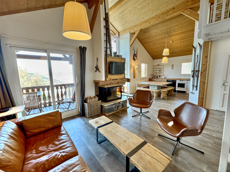 Dieses geräumige und helle, charmante Chalet bietet einen atemberaubenden Blick auf das Tal und befindet sich am Fuße der Pisten. Es besteht aus 3 Schlafzimmern im Erdgeschoss mit einer Eckbadewanne und einem separaten Duschbad sowie einem Schlafzimmer im Zwischengeschoss über dem Wohnzimmer.