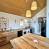 Das Wohnzimmer verfügt über eine voll ausgestattete Küche mit Waschmaschine, Backofen, Kochfeld und Geschirrspüler. Es gibt einen großen Kühl-/Gefrierschrank. Der große quadratische Tisch bietet viel Platz und Komfort beim Essen.